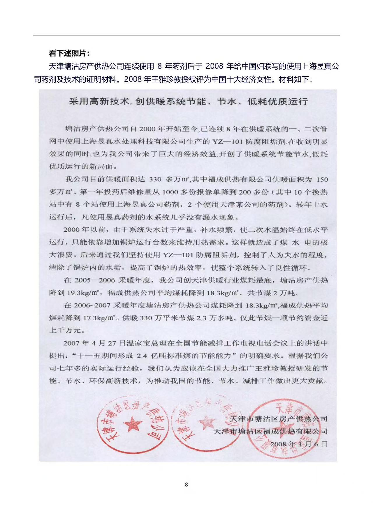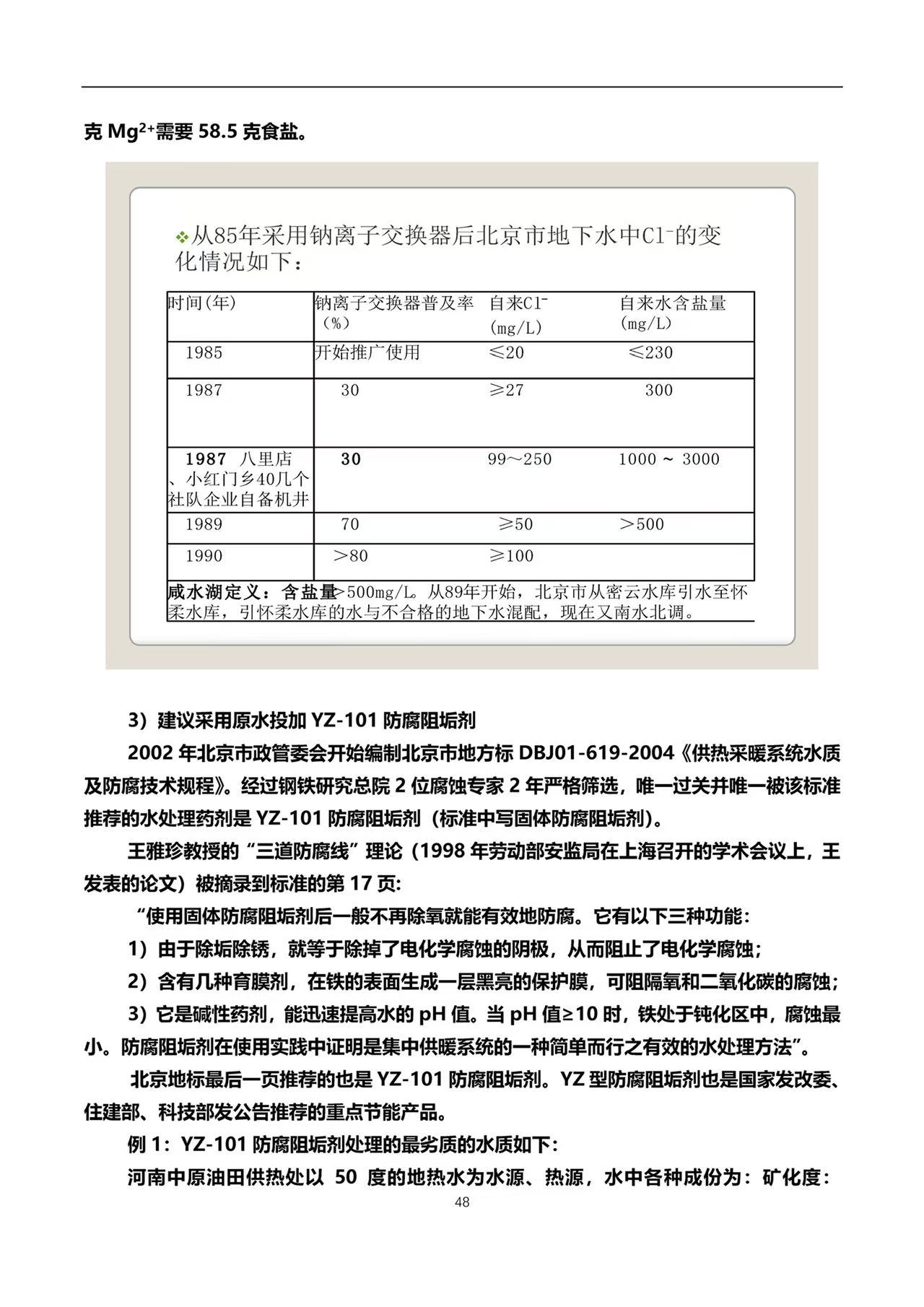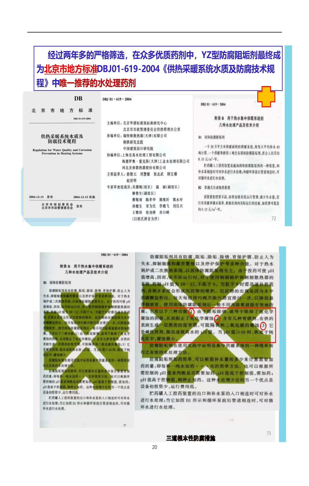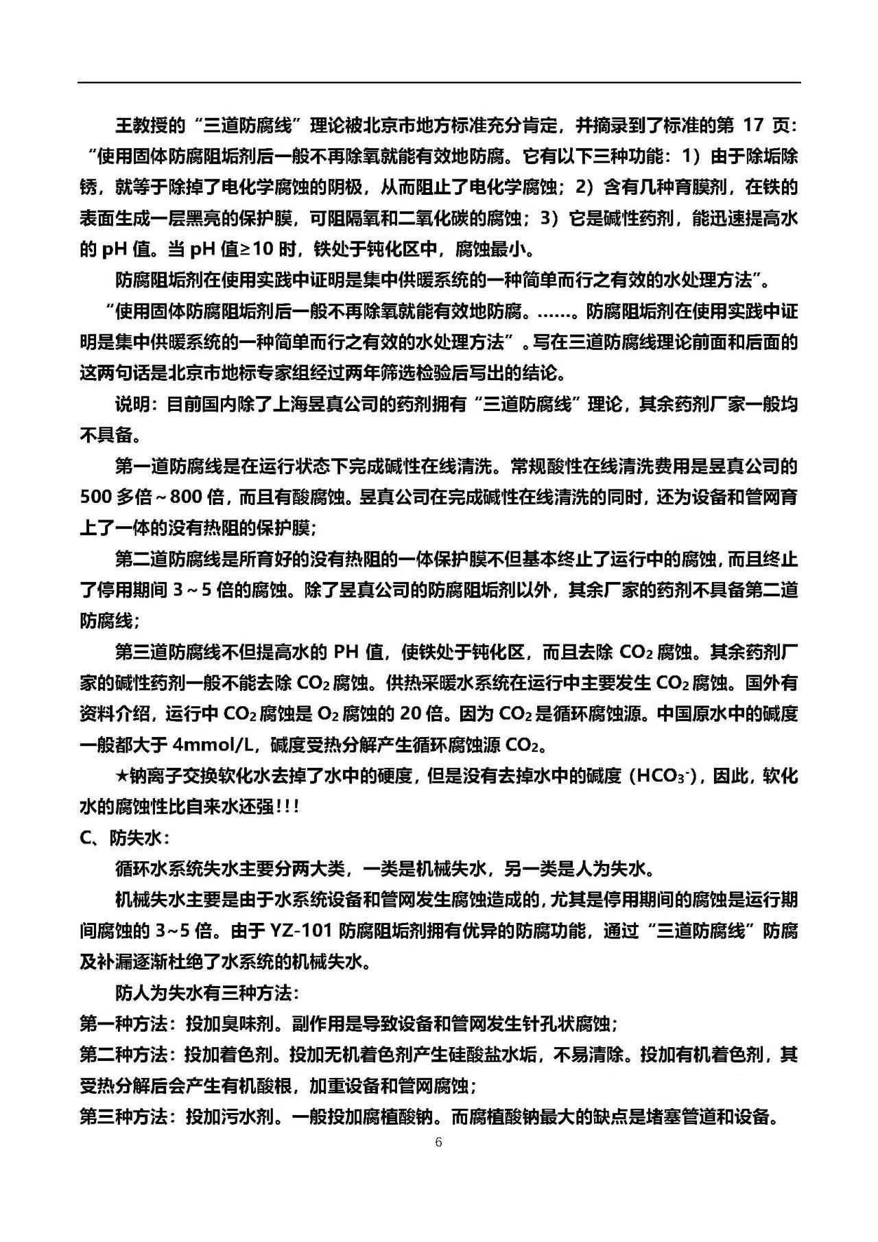 为了取代钠离子交换水处理方法,保护中国的地下水和地表水。我研发的系列YZ型防腐阻垢剂拥有三道防垢线、三道防腐线和四道节能线。由山东省七位热能专家鉴定的“四道节能线” 原理写入了济科鉴字[2007]第8号鉴定材料: