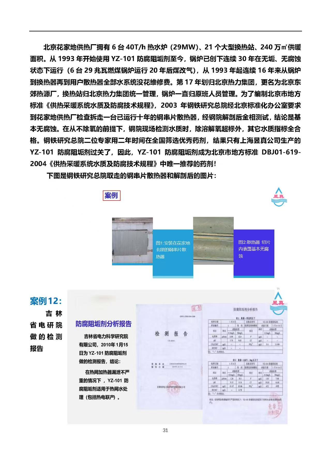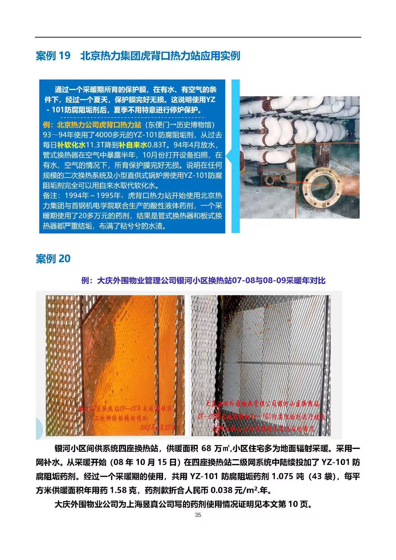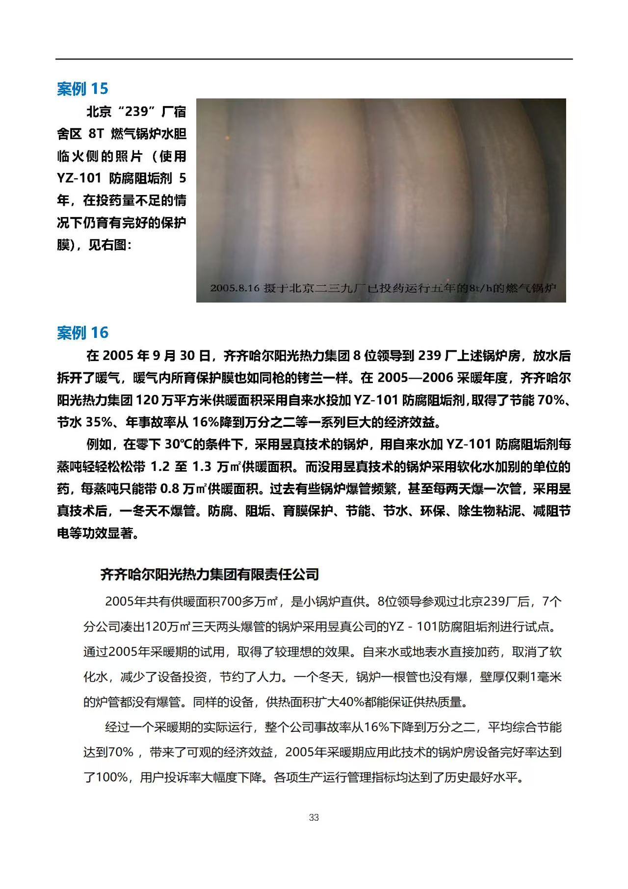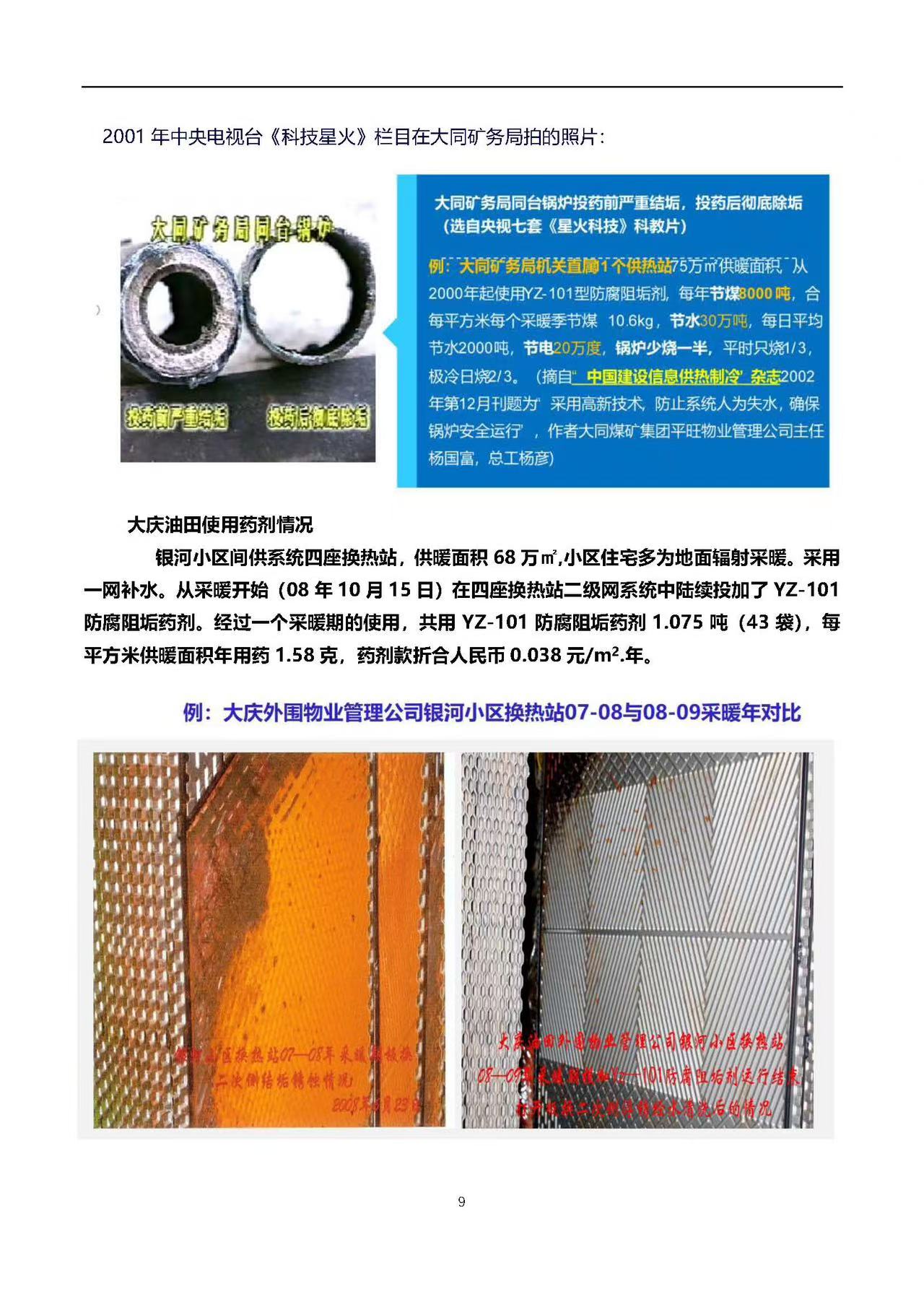 ⑴ YZ-101防腐阻垢剂能在半个月内基本除掉整个水系统中的老垢、老锈。一个月内除净老垢、老锈,仅此一点平均能节能20%以上。